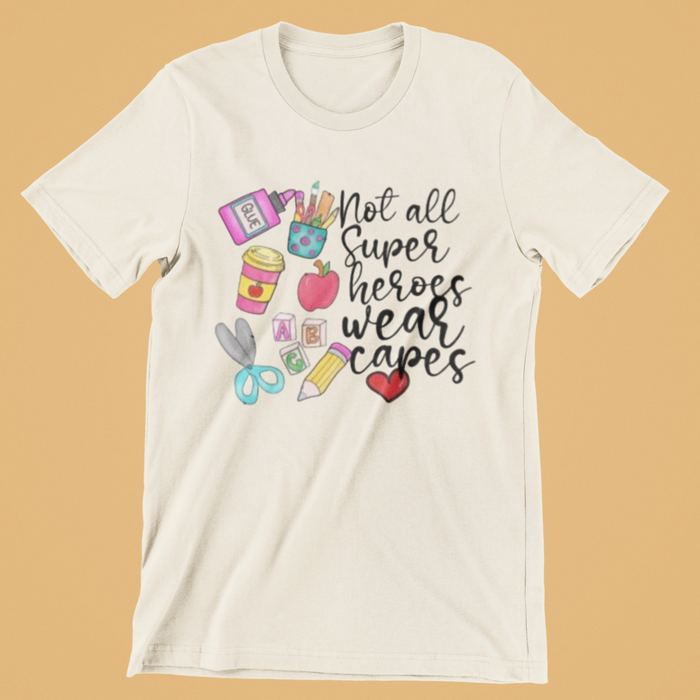 “Not All Superheroes Wear Capes” T‑shirt combines heartfelt sentiment with playful artistry. This custom, cozy tee lets you choose meaningful icons—like school supplies, tools, or symbols of everyday heroes—to surround the uplifting phrase. Handcrafted, girly, and perfect for honoring the quiet champions in your life.