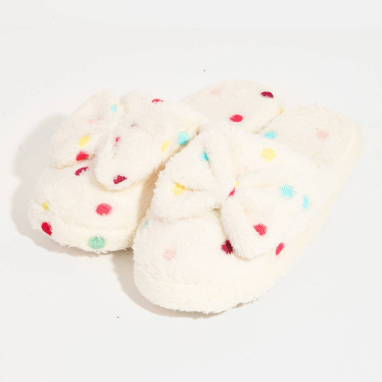 Step into cozy charm with these Polka Dot Bowtie Fuzzy Slippers. Featuring an adorable bowtie adorned with playful polka dots, they blend comfort and a touch of whimsy effortlessly. Perfect for lounging in style while keeping your feet snug and fun all day long.