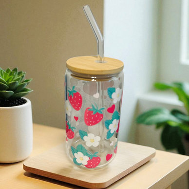 ZenyMar Collections' Strawberry Clear Glass Cup with Lid & Straw adds a fruity touch to your hydration routine. Featuring a vibrant strawberry design, this durable glass cup is perfect for enjoying your favorite drinks in style. The secure lid and straw make it convenient for sipping on-the-go or at home.